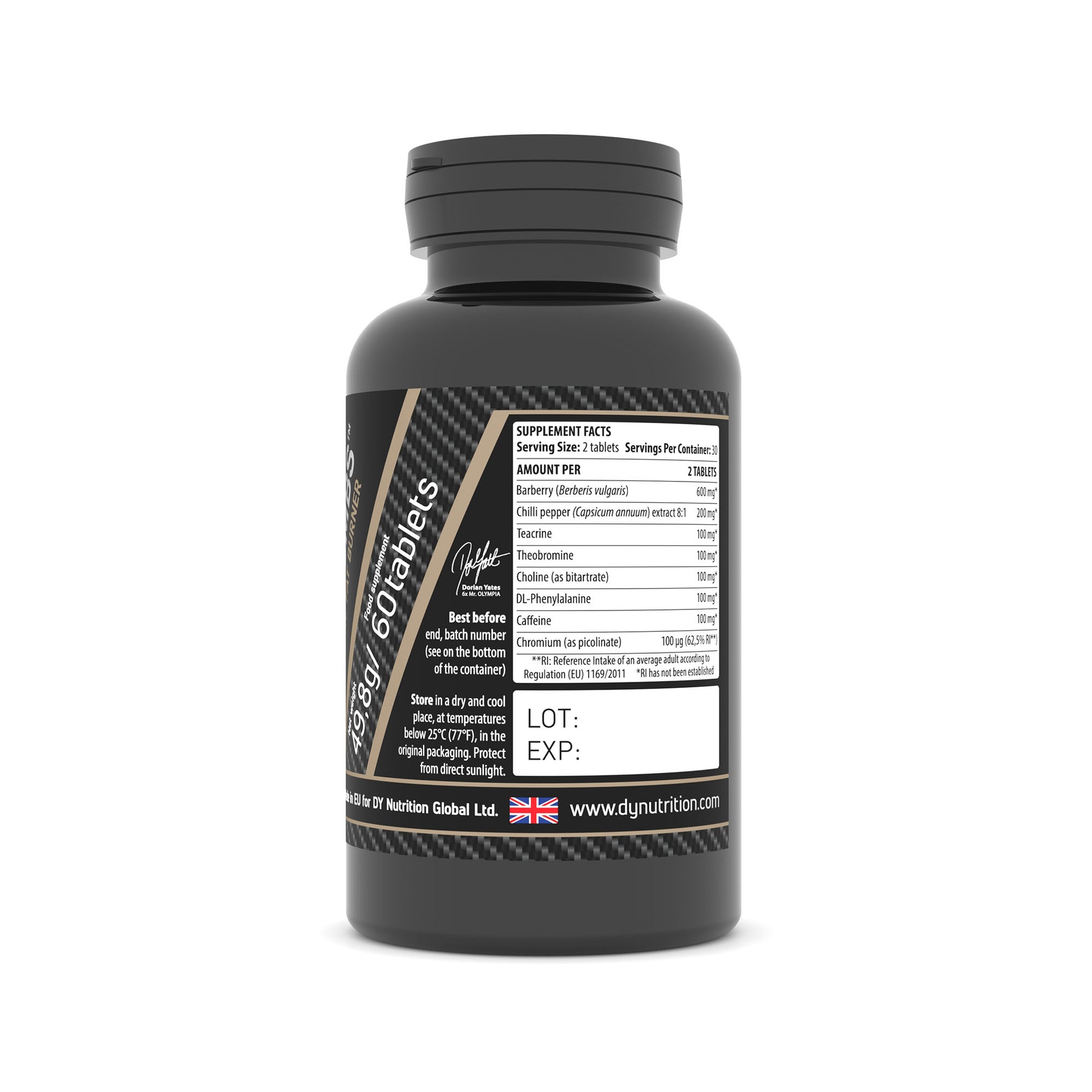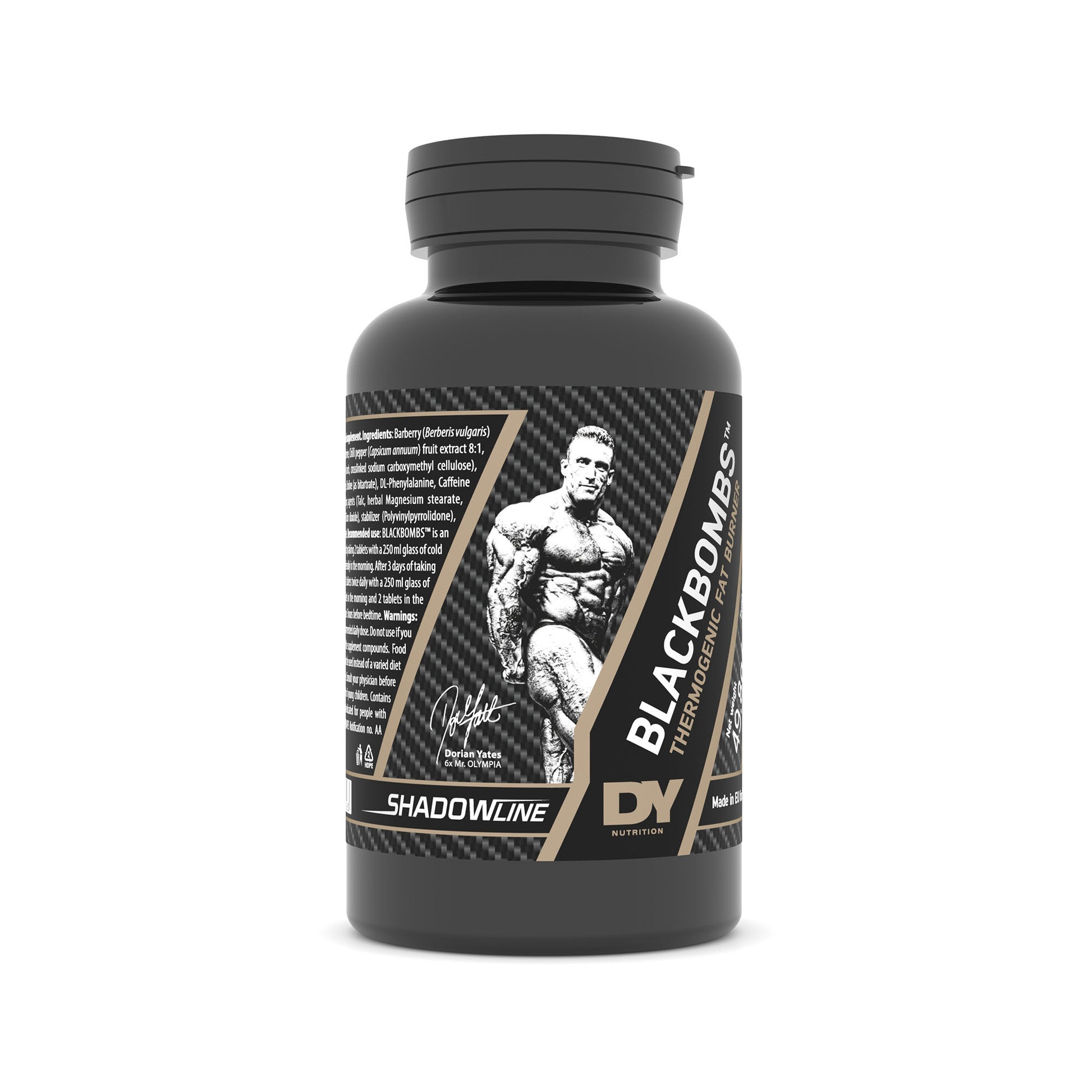 “Blackbombs™ este o minunatie. O centrală termogenică puternică, atotcuprinzătoare, așa cum nu ați mai văzut până acum, atacând grăsimea din orice unghi posibil. Începeți prin a lua 2 comprimate pe zi pentru a vă testa toleranța, apoi cresteti până la un maxim de 4 tablete zilnic, și bucurați-vă de acest transformator de ardere a grăsimilor, pe măsură ce slăbiți zide zi.” Dorian Yates