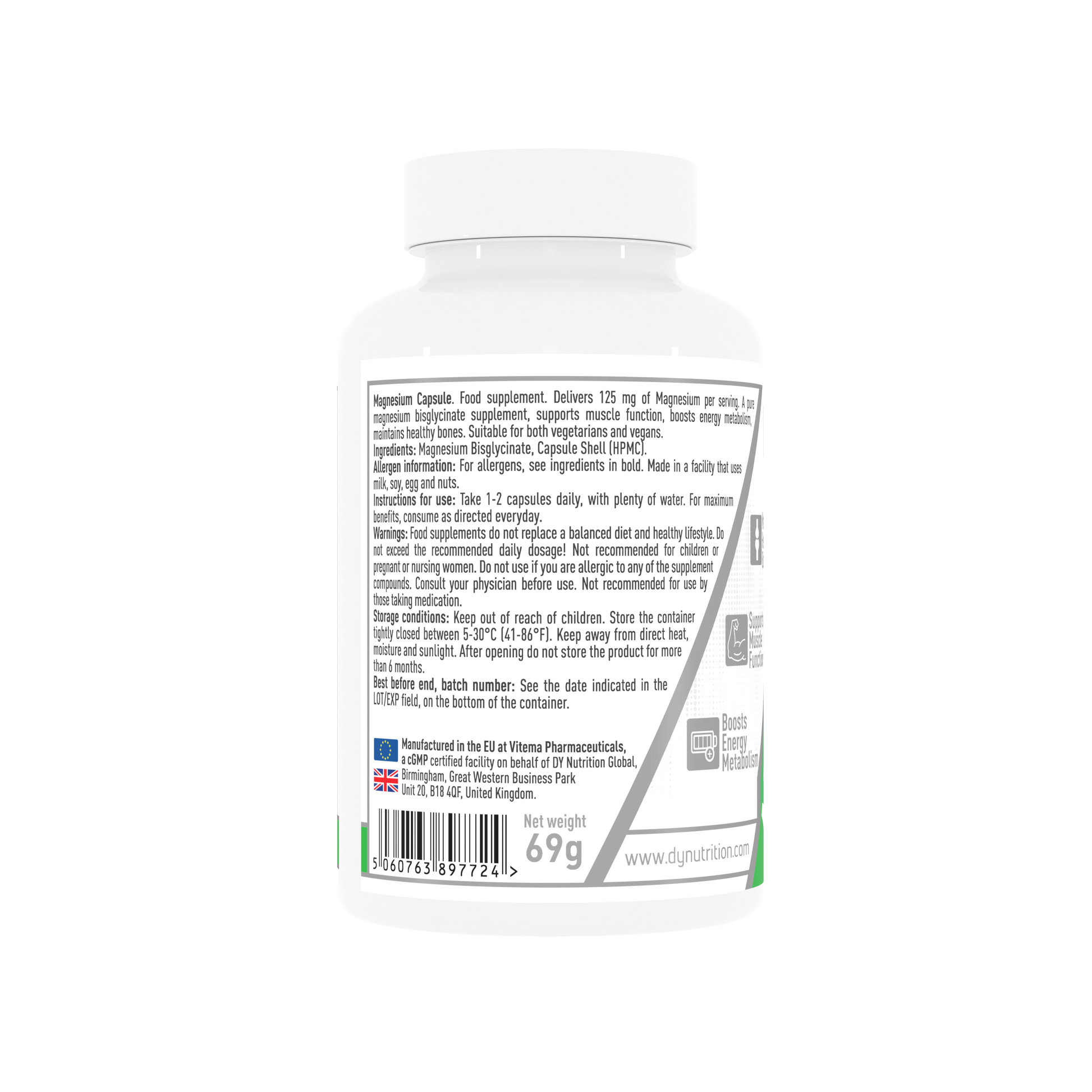 Ingrediente: Bisglicinat de magneziu, capsulă (HPMC)..